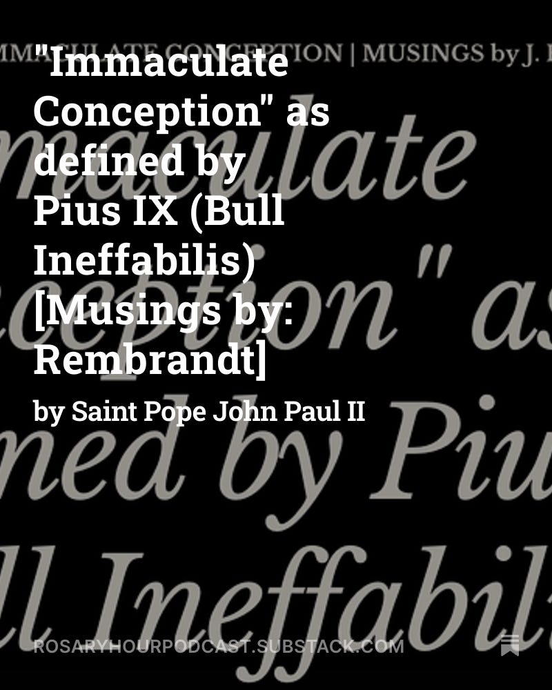 The Rosary Hour Podcast Newsletter invites you to read and reflect upon Saint Pope John Paul II’s exploration of the definition of "Immaculate Conception" as per Pius IX (19 June 1996, page 11 in L'Osservatore Romano).